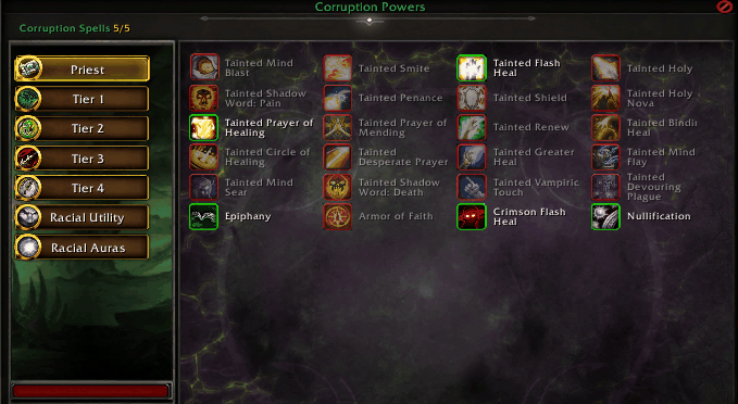 As you gain more levels in Corruption you'll eventually unlock the Powers system. A pseudo talent-like system that will allow you to take various new abilities that range from class spell modifers, procs, flat stat increase, stat conversions to other stats, damage increasing effects, and even brand new abilities and effects for your class!